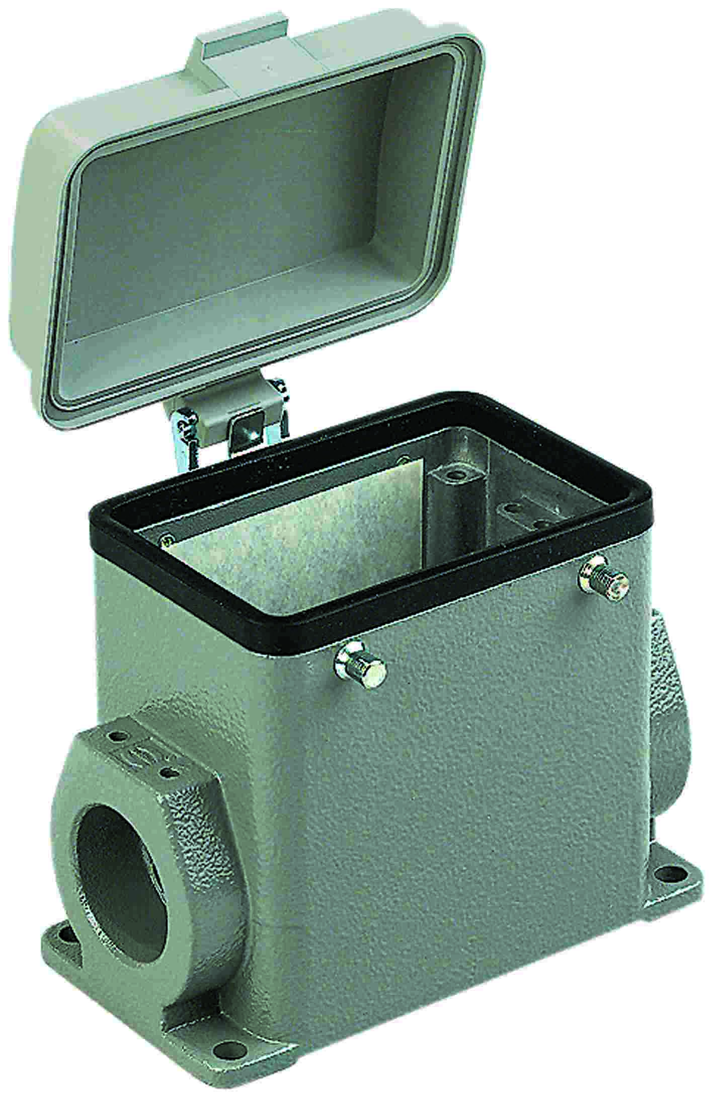 表面安装底座, 带塑料保护盖, 尺寸: 32 A, 高结构, 双锁扣(上壳), 边出线, 1x M25, 材料 (上壳/底座): 压铸铝, 粉末涂层, RAL 7037(土灰), 防护等级: IP65
