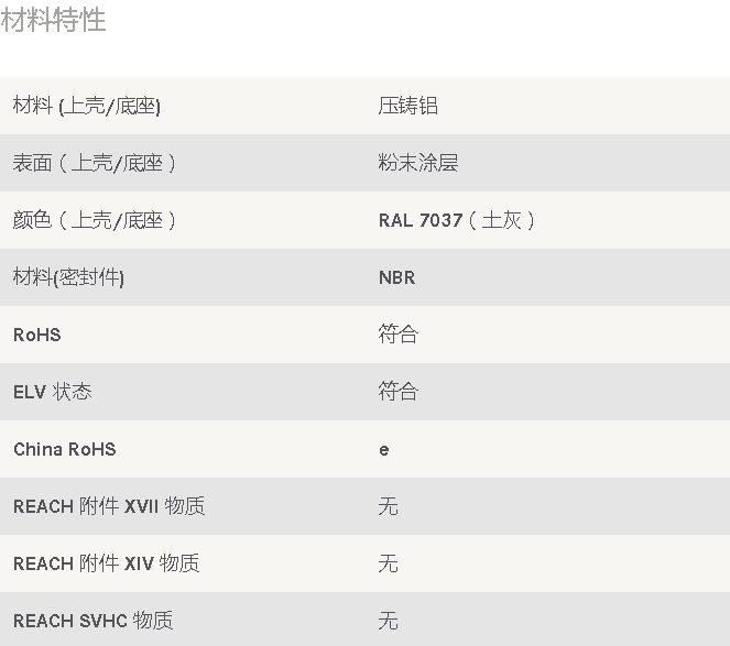 不封底安装底座, 带塑料保护盖, 尺寸: 32 A, 低结构, 双锁扣(上壳), 材料 (上壳/底座): 压铸铝, 粉末涂层, RAL 7037(土灰), 材料(密封件): NBR, 防护等级: IP65