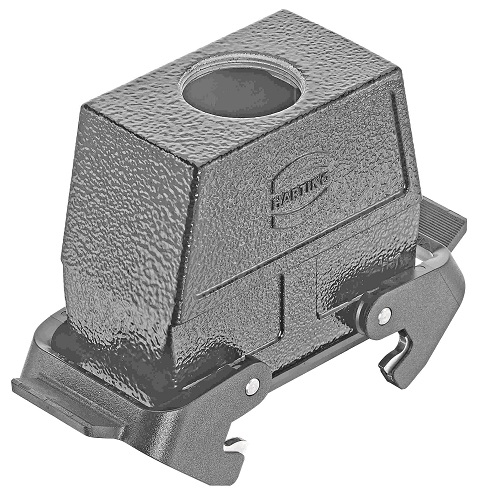 飞线底座, 黑色, 尺寸: 16 B, 高结构, 双锁扣, 聚碳酸酯 (PC), 不锈钢, 顶出线, 1x Pg 29, 材料 (上壳/底座): 压铸铝, 粉末涂层, RAL 9005(乌黑), 材料(密封件): NBR, 防护等级: IP65
