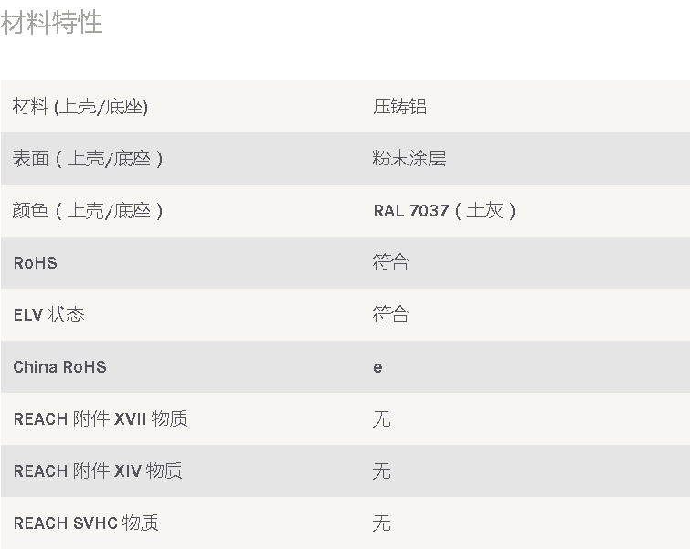 上壳, 尺寸: 24 B, 高结构, 单锁扣, 边出线, 1x Pg 29, 材料 (上壳/底座): 压铸铝, 粉末涂层, RAL 7037(土灰), 防护等级: IP65, IP66, IP67