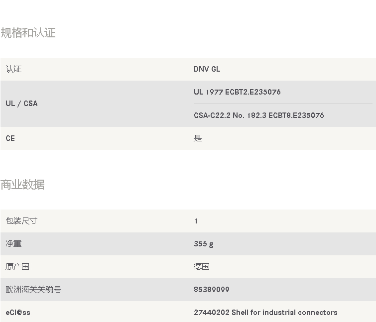 - 产品类别: 工业连接器HAN系列