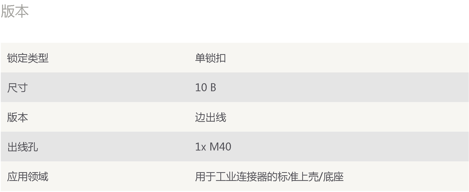 上壳, 尺寸: 10 B, 高结构, 单锁扣, 边出线, 1x M40, 材料 (上壳/底座): 压铸铝, 粉末涂层, RAL 7037(土灰), 防护等级: IP65, IP66, IP67